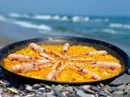 typical features of its cuisine include paella, a simmered rice dish with seafood or meat (chicken or rabbit), fartons, buñuelos, the Spanish